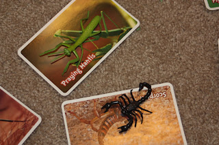 Buzz played with the bugs a lot. He really enjoyed matching the to the flashcards and pretending to catch them with the different nets and containers. Boo and Bean liked the rice the best, so now I know I can just fill a tub with rice and some containers and they'll have a blast together!